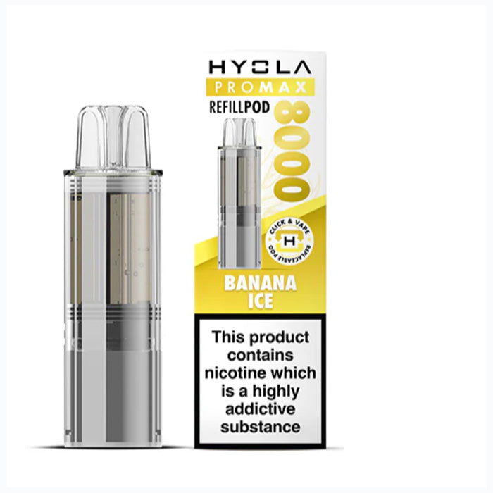 The Hyola Pro Max refill Banana Ice: Enjoy the creamy sweetness of ripe banana with a cool, icy finish.
