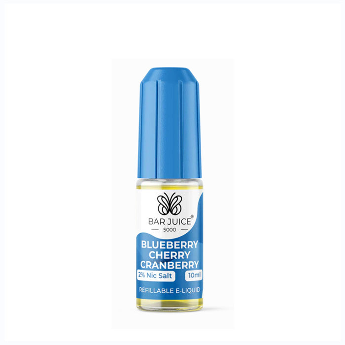 Blueberry Cherry Cranberry nic salt by Bar Juice 5000 is a blend of tart cranberries, sweet blueberries, and juicy cherries. On the inhale, you'll notice the tangy cranberry flavour, which is quickly followed by the sweet and slightly tart notes of blueberry and cherry.
