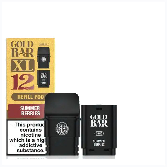 The Summer Berries Gold Bar XL refill pack muddles sweet strawberry, tangy raspberry and ripe blueberry notes throughout, for a rich berry blend.