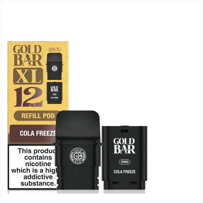 The Cola Freeze Gold Bar XL refill pack recreates the sugary taste of fizzy cola, fused with cool ice notes for an authentic soda-inspired vape.