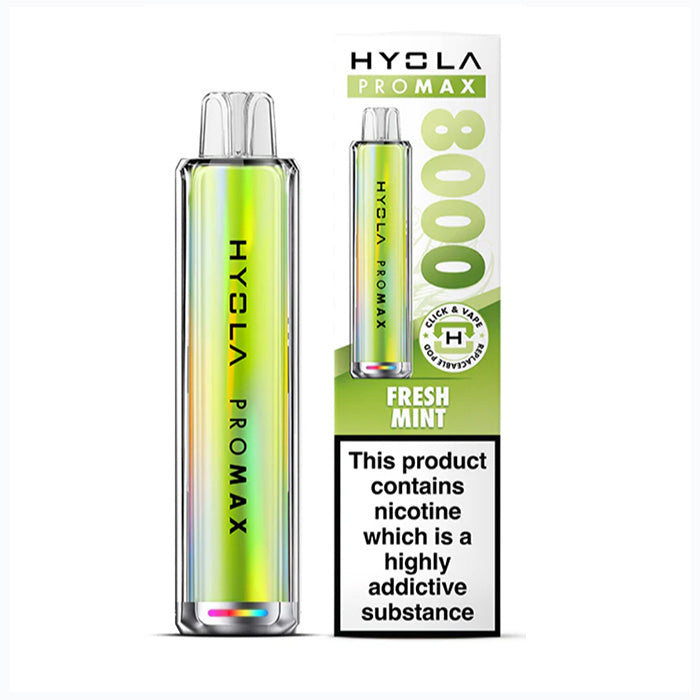 The Hyola Pro Max 8K Pod Kit Fresh Mint: Features the fresh-tasting flavour of mint throughout.