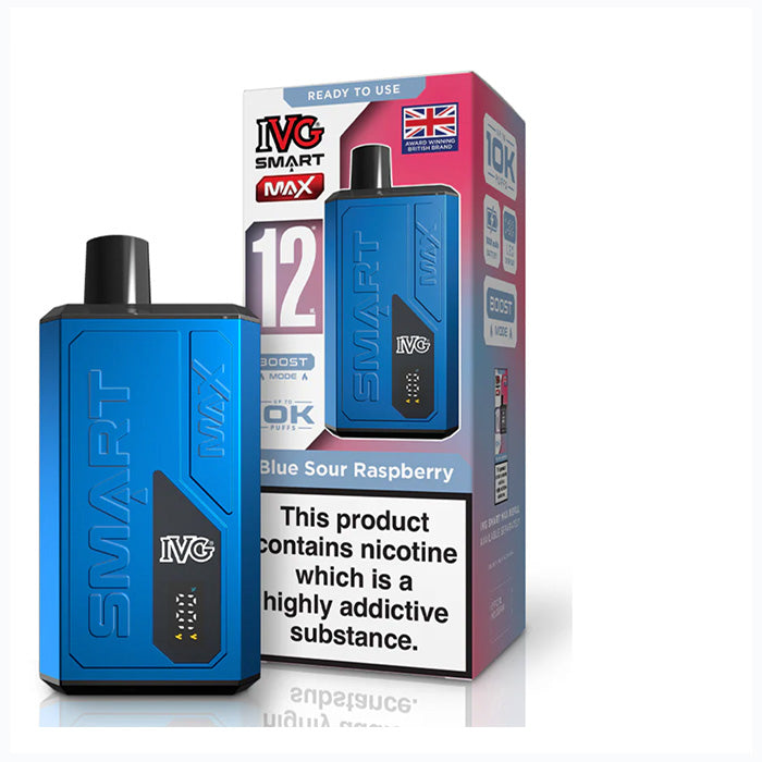 The IVG Smart Max kit includes a built-in mesh coil 2ml pod and 10ml auto-refilling e-liquid container, both pre-filled with IVG's Award Winning Nic Salt . This ingenious design allows for a clean vaping experience and delivers 10,000 puffs in a fantastic Vaping Experience.