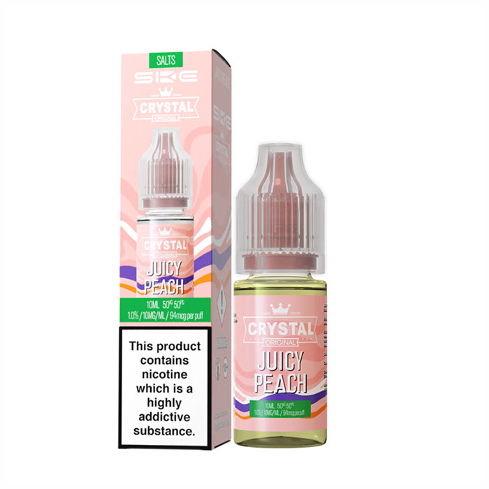 Introducing Juicy Peach Crystal Nic Salts, a burst of summer sweetness in every puff.