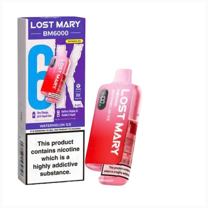 The Lost Mary BM6000 Pod Kit Watermelon Ice: Chills the exotic, juicy-tasting flavour of watermelon with a crisp ice finish.