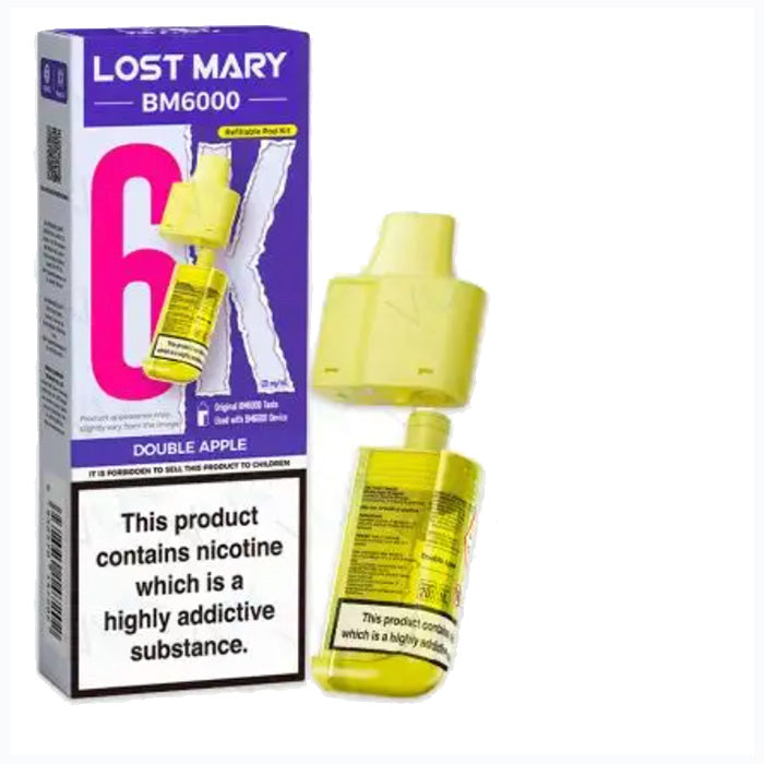 The Double Apple Lost Mary BM6000 refill pack provides a bold and fruity flavour with crisp but sweet notes of apple present throughout.