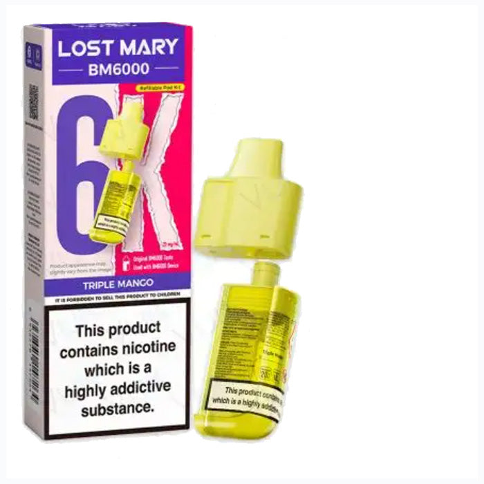 The Triple Mango Lost Mary BM6000 refill pack offers juicy-tasting notes of mango to deliver bold tropical flavour with every puff.