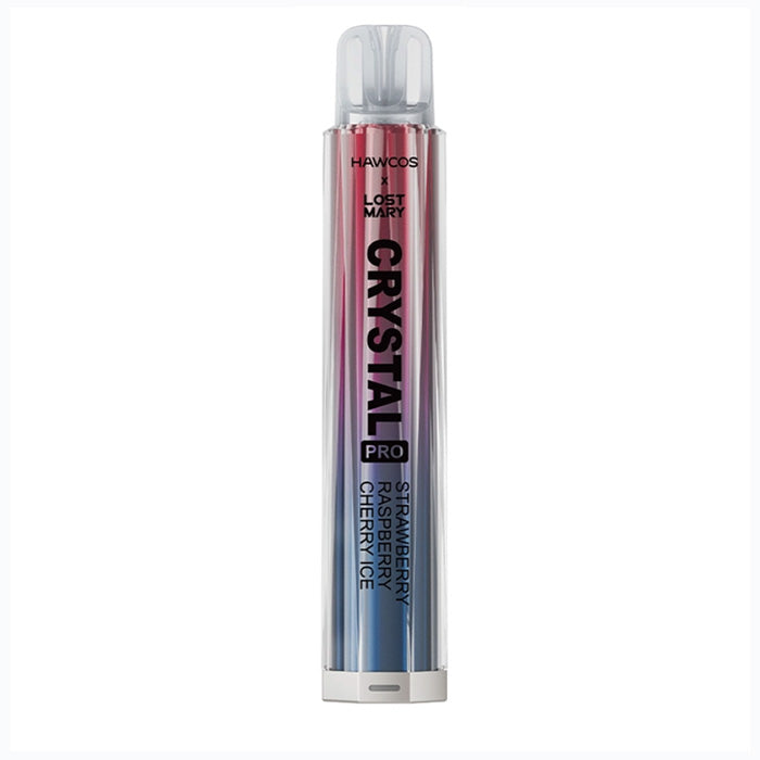 The Lost Mary X Hawcos Crystal Pro Kit -Strawberry Raspberry Cherry Ice: Layers a sweet strawberry and raspberry inhale with a rich cherry and cool ice exhale.