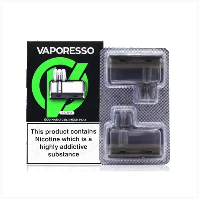 Replacement pods for the Vaporesso Eco Nano and Eco Nano PRO pod vaping kits. These convenient refillable pods feature Vaporesso's COREX and COREX Smooth Heating and SSS technologies, boasting an extended vaping lifespan per pod.